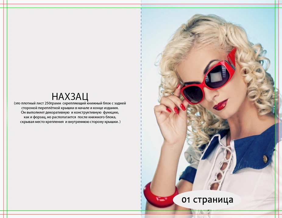 Полиграфическая книга всегда начинается с правой страницы (слева располагается форзац) и заканчивается левой страницей (справа — нахзац). Важно помнить, что общее количество страниц должно быть чётным, иначе нарушится структура блока и порядок сборки.