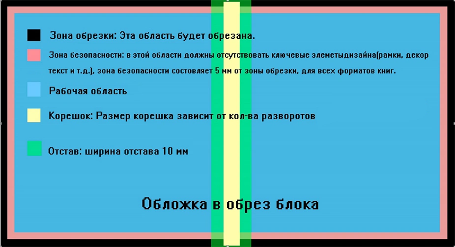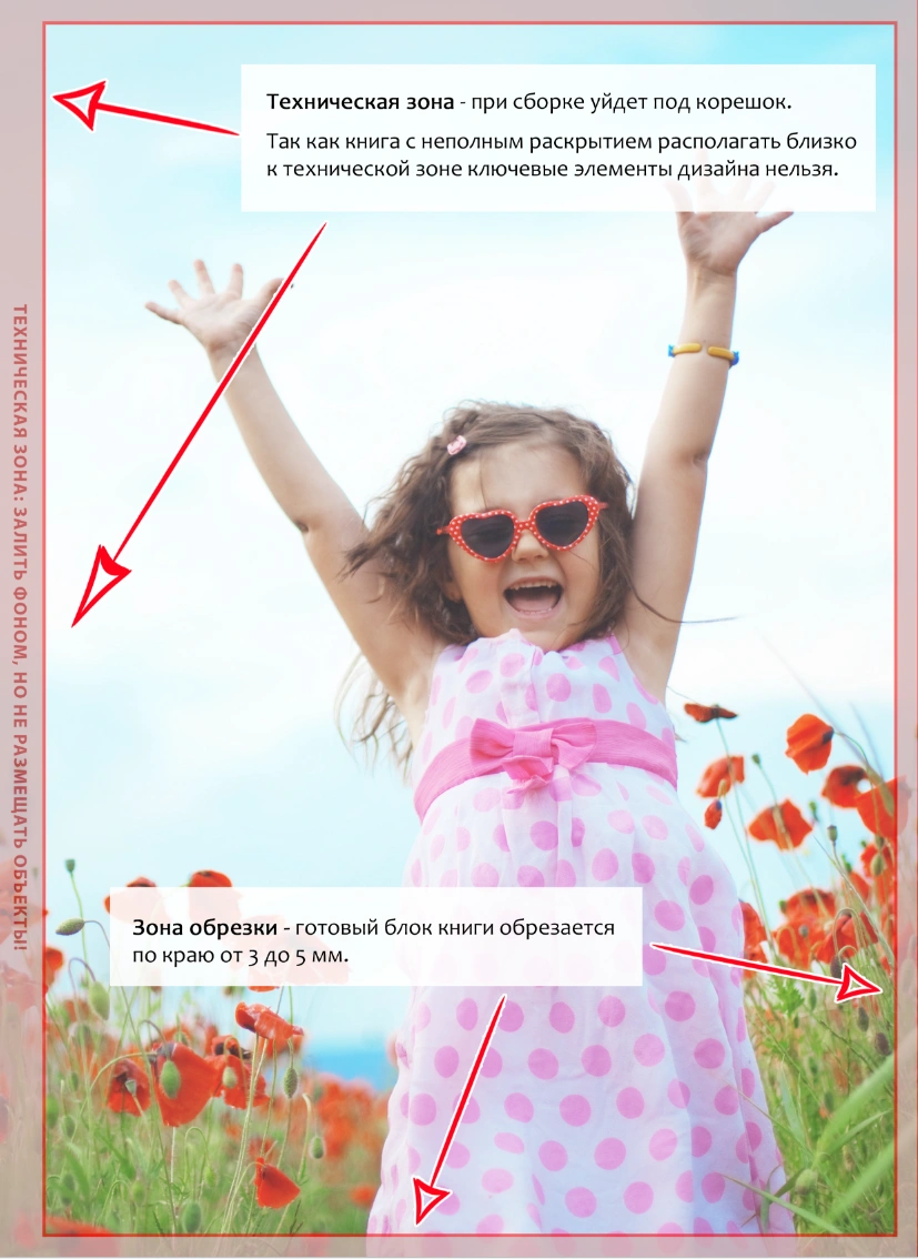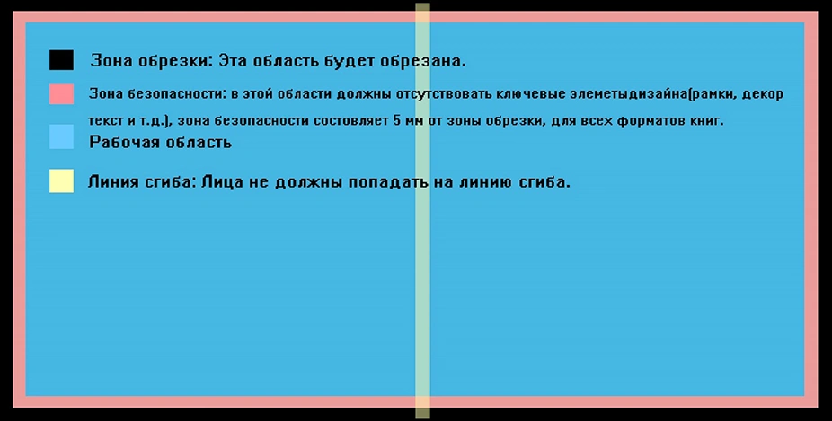 Поле под обрезку обязательно должно быть заполнено фоном изображения, без резких границ и важных объектов. Это обеспечит аккуратный внешний вид книги после подрезки.