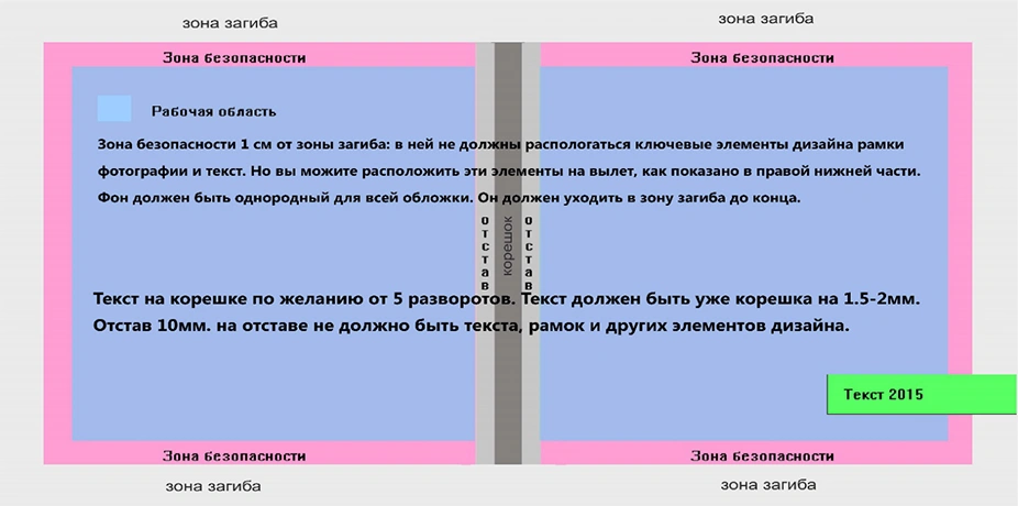 Также следует оставлять отступ от корешка (отстав) не менее 1 см. Он необходим, чтобы книга свободно открывалась, не заламываясь в месте сгиба. На этом участке не должно быть никаких важных элементов дизайна — текста, лиц, логотипов или рамок.