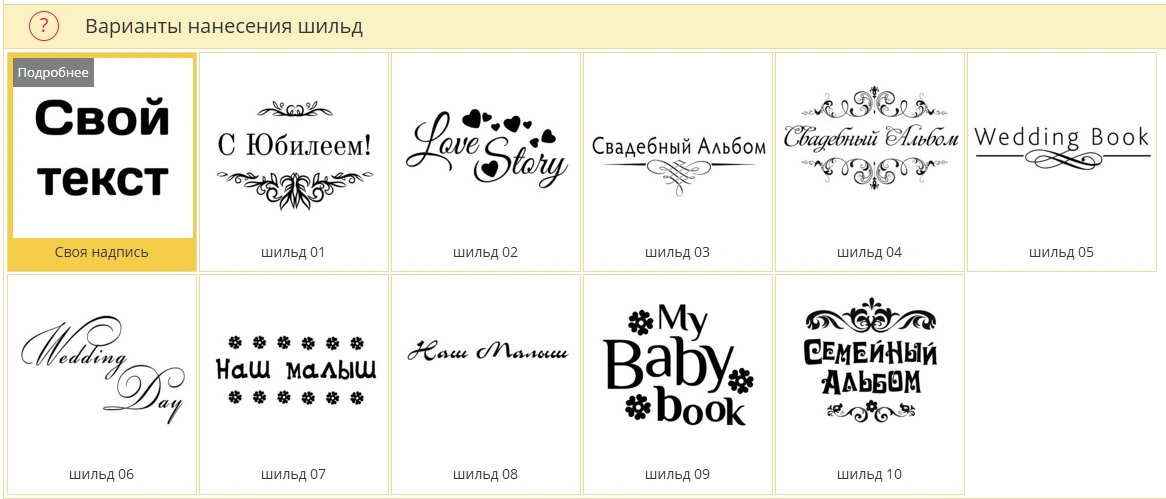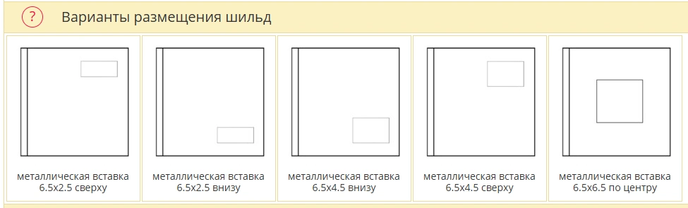 Шильд можно расположить в заранее продуманных зонах обложки — наши варианты размещения показаны на иллюстрации. Также Вы можете выбрать место установки прямо в калькуляторе фотокниги при оформлении заказа.